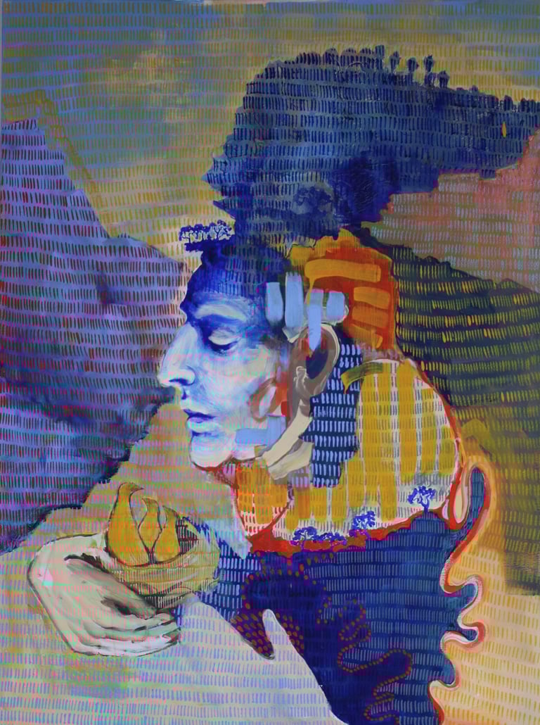 Originally, I wanted to paint an image of my mother going back to earth and ether. In the process, as what I imagined in my mind’s eye wasn’t “working”, it changed into a self-portrait.